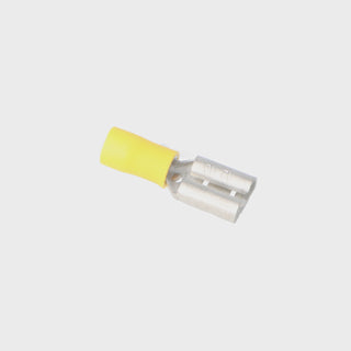 Pre-insulated female spade terminals, 3/8" (9mm) fit, pack of 50. Secure and reliable connections, yellow insulation for easy identification.- £6.00