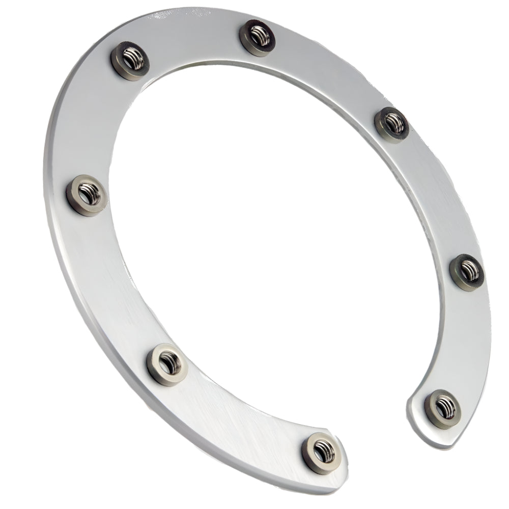 P.C.D. This 3mm thick, split, aluminium ring has eight threaded M5 steel inserts on a 102mm (4") P.C.D.