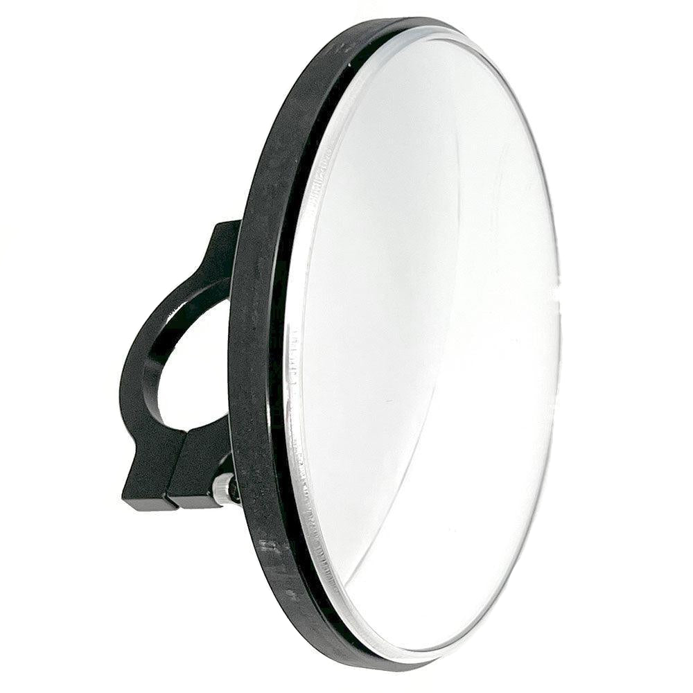 This very wide-angle mirror is designed to clamp to a 38mm diameter tube on your roll cage.