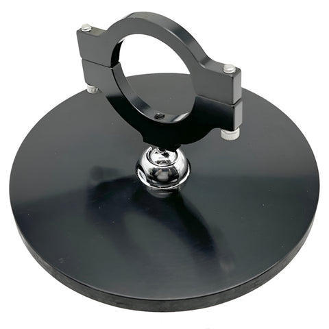 The curved glass mirror is mounted on an anodised aluminium disc with a spherical mount for maximum adjustability.