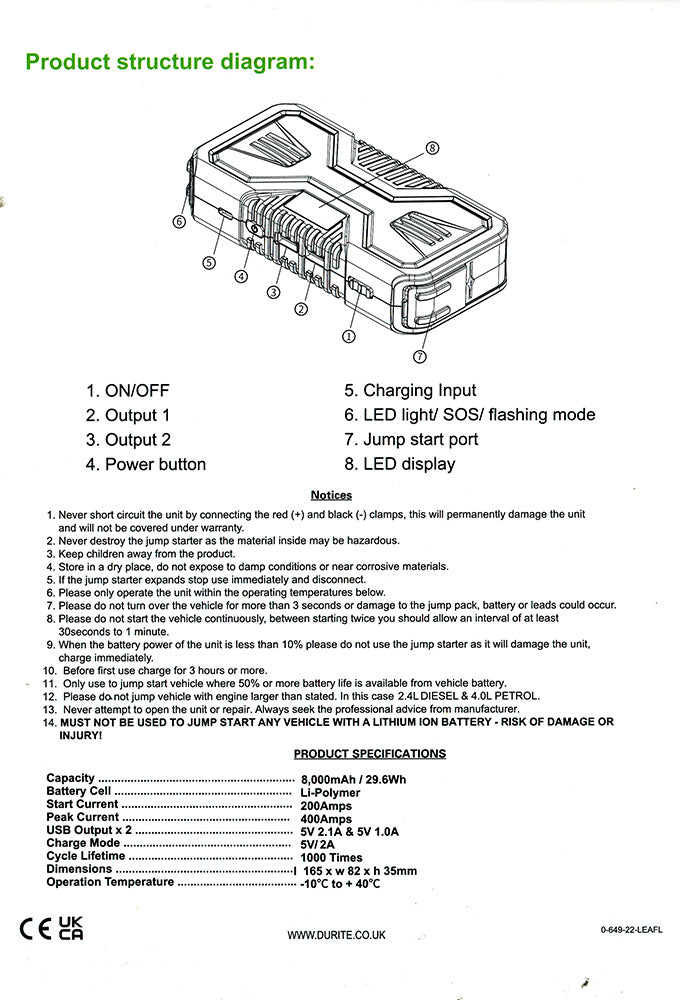 and a 3w, built-in LED torch come emergency flasher and an LED display showing it's level of charge.