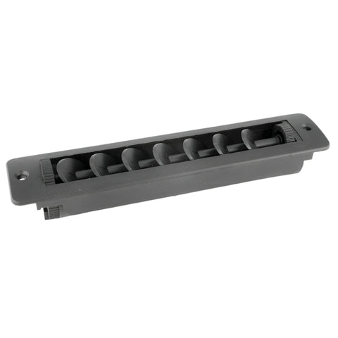 This clever vent has a set of rotating vanes with a knurled thumb-wheel at one end to direct the air.