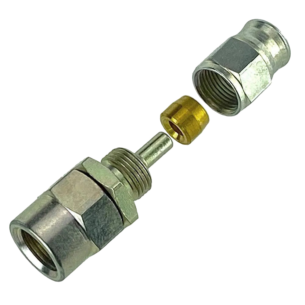 This 1/8" BSP female swivel fitting with a flat seat is designed for use with PTFE braided brake hoses. It features a union and olive for secure and leak-free connections. The fitting ensures optimal performance and reliability in brake systems.