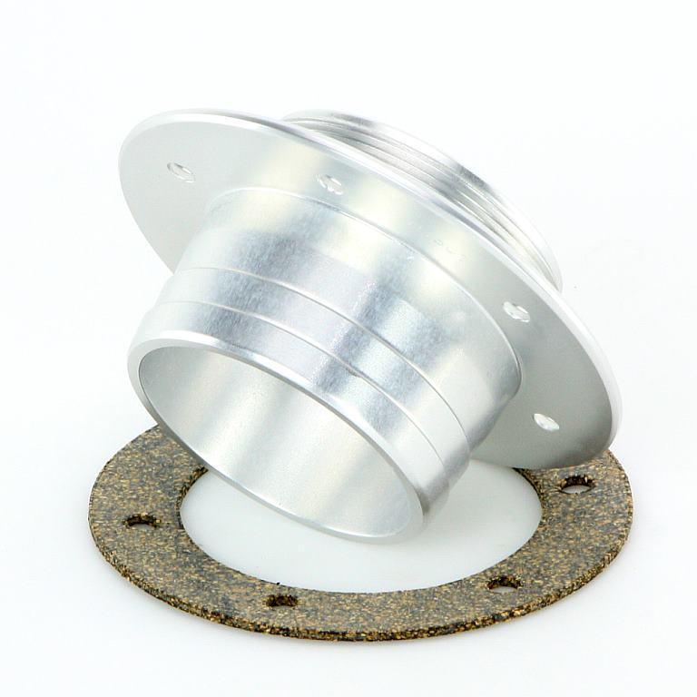 This anodised aluminium neck/flange is designed for use with 2" Aston caps. It features an 18tpi thread and a 51mm (2") hose outlet. The flange diameter is 82mm. Supplied with a cork gasket and stainless steel fixings for a secure and reliable seal.
