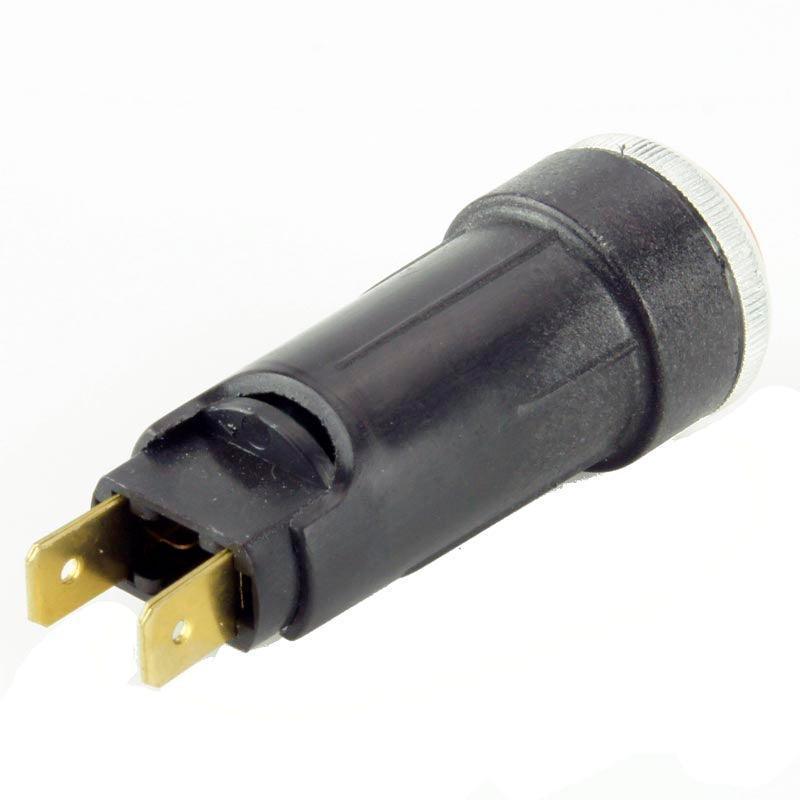 Two 1/4" spade terminals on rear and 2 watt capless bulb in a pull-out bulb holder.