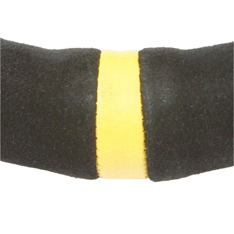 Yellow, leather ' Straight-ahead' indicator sewn into rim covering.