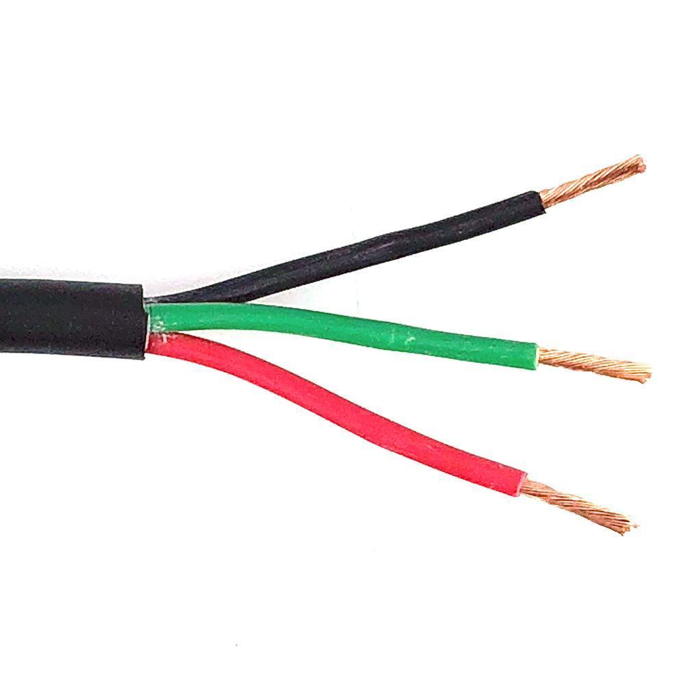 This 16.5 Amp, 3-core cable is ideal for a variety of electrical applications. It features three cores (Green, Red, Black) with a .32/0.20mm conductor and a 5.3mm overall diameter. The cable is PVC sheathed for durability and safety.