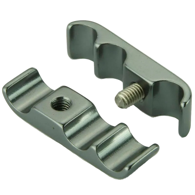 Lightweight aluminium block for tidying and separating 3 electrical or HT cables, pipes, hoses or control cables up to 8mm diameter.