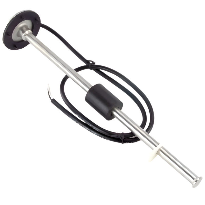 A metal-impregnated, lightweight float rises up and down the sender tube as the fluid level changes.