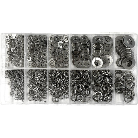 This economy pack consists of a comprehensive 790-piece assortment of stainless steel flat and spring washers is a must-have for any DIY enthusiast, professional tradesperson, or homeowner. Covering a wide range of common sizes (4mm, 5mm, 6mm, 8mm, 10mm, and 12mm), this kit ensures you'll always have the right washer on hand for various applications. Crafted from grade 201 stainless steel, these washers offer excellent corrosion resistance, ensuring long-lasting performance and durability.