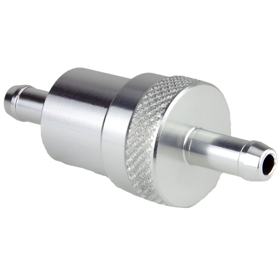 This 8mm aluminium fuel filter is designed for optimal fuel flow and easy maintenance. Its polished natural finish offers a clean look, while the sintered brass filter element ensures effective filtration. The filter is easily dismantled for cleaning, making it a reusable and cost-effective solution. It features 8mm push-on hose tails for convenient installation.