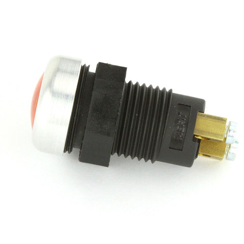 These large diameter warning lights have a 22mm diameter screw on bezel with a dash projection of 9mm, the rear projection of the light body is 36mm, mounting through a 17mm hole with a maximum panel thickness of 14mm. Screw terminals on the rear and a threaded collar to secure it to the dashboard. This warning light also includes a 2w Bulb.