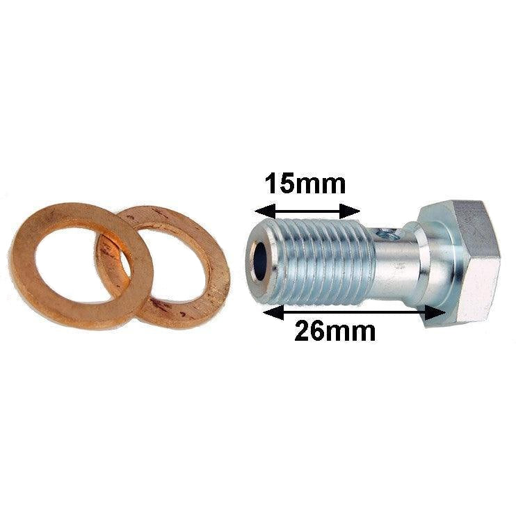 High-quality 7/16" UNF male banjo bolt, ideal for various applications requiring a secure and reliable connection. Supplied with two copper washers for a tight seal.