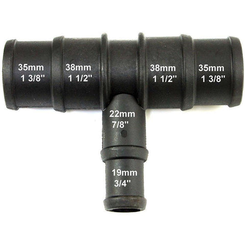 Key Features:STEPPED T PIECE CONNECTOR 35/38MM - 22/19MM - NYLON #STP7