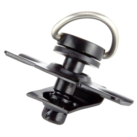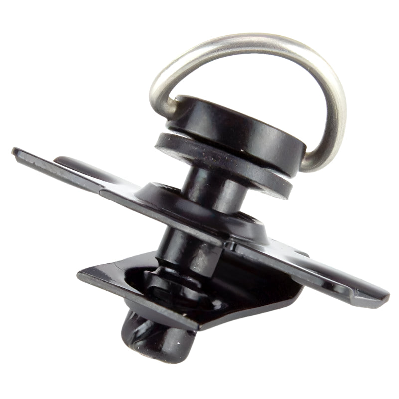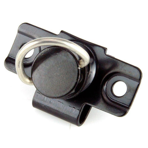 BLACK QUARTER TURN FASTENER WITH RIVETED BACKING PLATE.