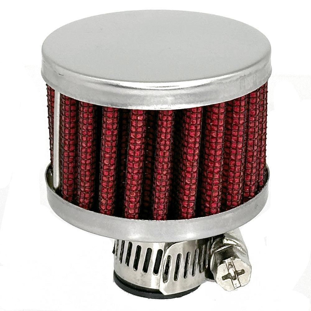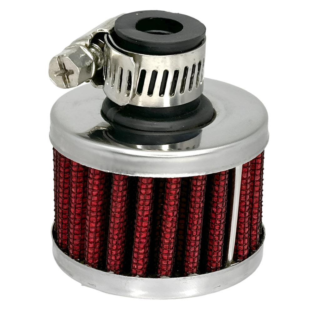 This 10mm chrome breather filter is designed for use with oil catch tanks, ensuring efficient crankcase ventilation. It features cotton and mesh filtration media for superior air filtration, preventing contaminants from entering the engine. The chrome-plated top and bottom plates add a touch of style, while the stainless steel hose clip ensures a secure fit. The rubber inlet has a 10mm diameter. Ideal for custom car builds and motorsport applications where high performance and reliability are paramount.