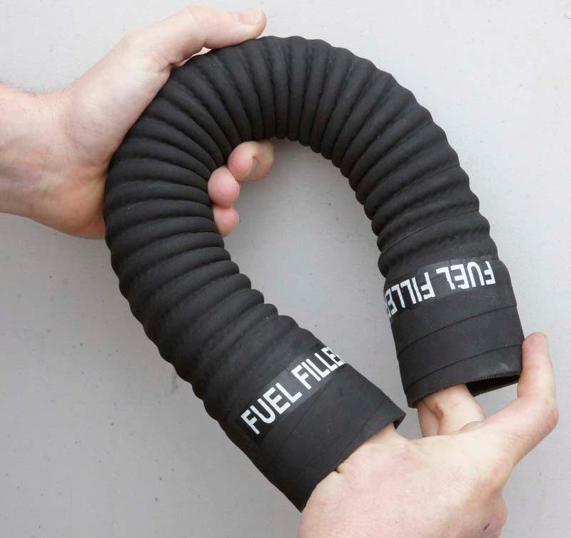 Flexible hose with spiral wire reinforcement for connecting your fuel filler to your fuel tank.