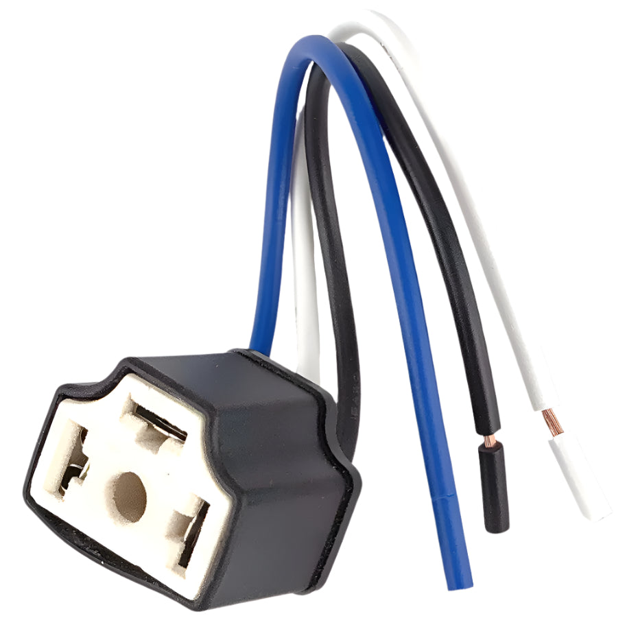 This standard-format headlamp plug is made from heat proof ceramic with a PVC outer sheath and is pre-wired with female spade terminals on 150mm long fly leads.