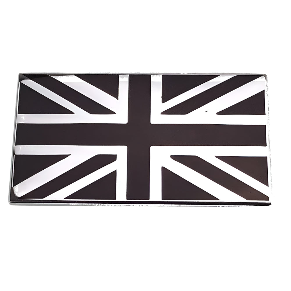 This stylish chrome and black Union Jack emblem is a perfect way to show your national pride. Crafted from metal, this high-quality emblem adds a touch of British flair to any car, laptop, or other smooth surface. Its compact size makes it versatile and easy to apply.