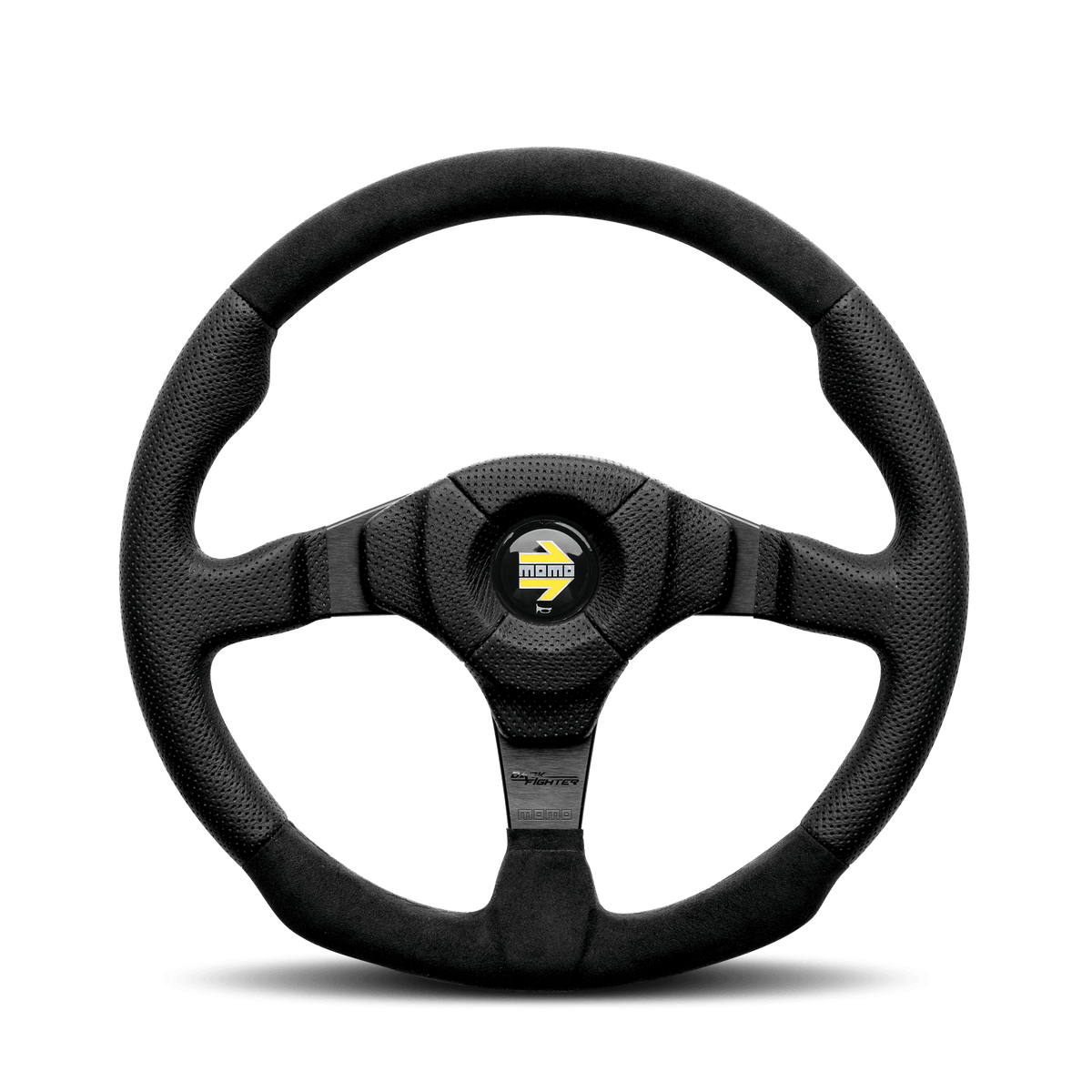 The Dark Fighter steering wheel offers a cutting-edge design with a classic twist. Crafted in Italy using high-quality materials, this wheel blends zebrano-finished mahogany wood with modern airleather for a perfect balance of old and new.