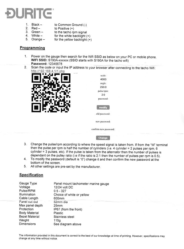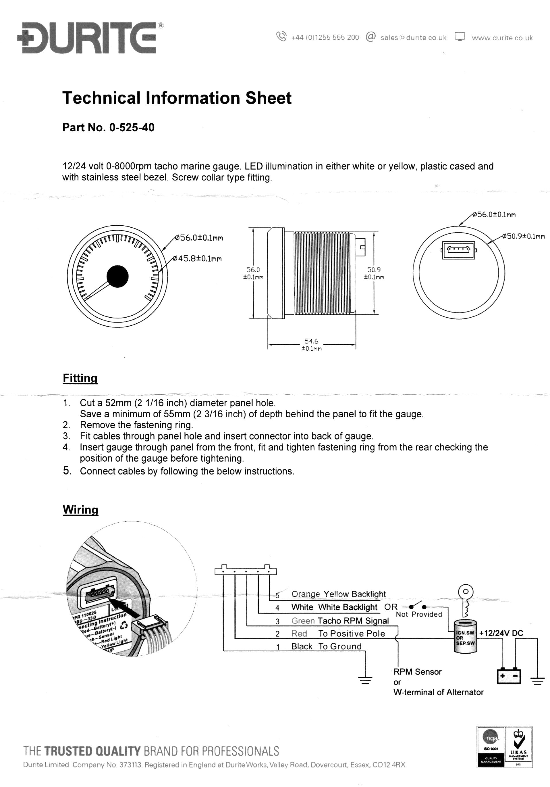 56mm DURITE WATERPROOF TACHOMETER #DTACH2