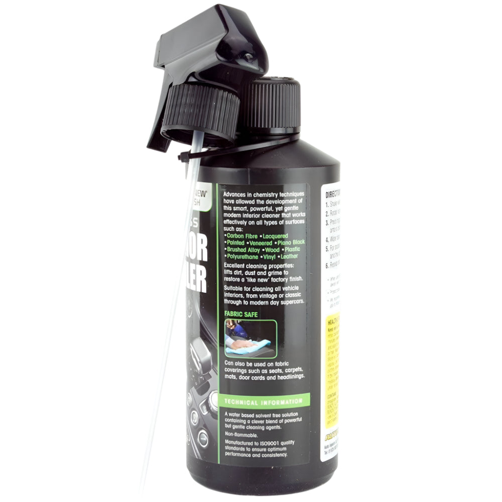 Advances in chemistry techniques have allowed the development of this smart, powerful yet gentle modern interior cleaner that works effectively on all types of surfaces such as: Carbon Fibre, Lacquered, Painted, Veneered, Piano Black, Brushed Alloy, Wood, Plastic, Polyurethane, Vinyl, Leather.