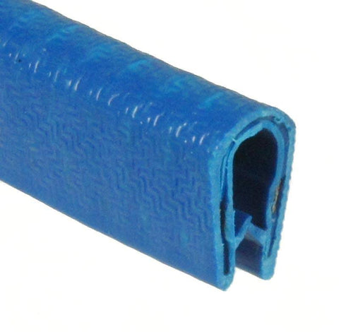 This embossed blue PVC edge trim, reinforced with steel, provides a durable and stylish finish for panels up to 5mm thick. The trim features a 10mm channel depth and can bend to a 50mm radius curve, making it suitable for various applications. Sold by the metre, ensuring you receive the exact length you need.