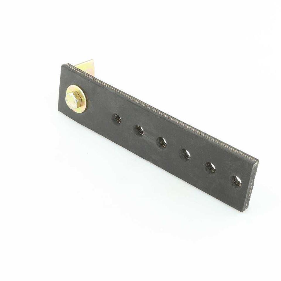 is bolted to a 42mm x 180mm block of 8mm thick, fabric-reinforced rubber.