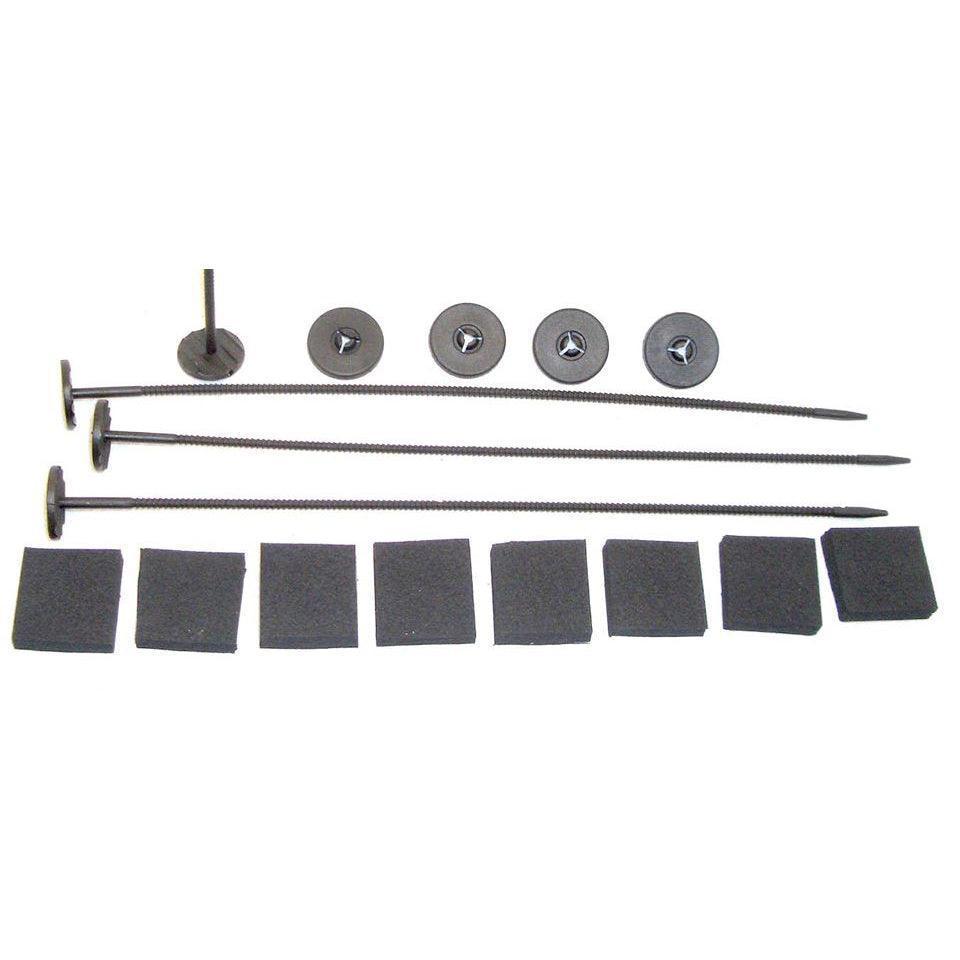 This fan mount kit includes nylon cable ties and self-adhesive foam pads, providing a secure and versatile mounting solution for cooling fans and other components.
