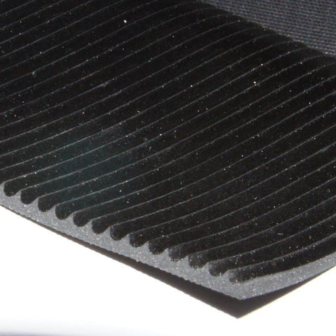 This high-quality, black rubber matting features fine, pointed flutes and is sold by the metre from a 1.2m wide roll. Ideal for various applications.