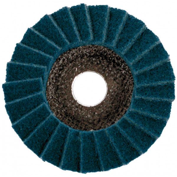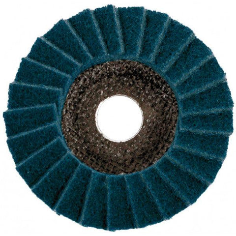 A non-woven flap disc, ideal for cleaning, polishing, and finishing various materials. Smear-resistant and durable, with a max RPM of 13,300.