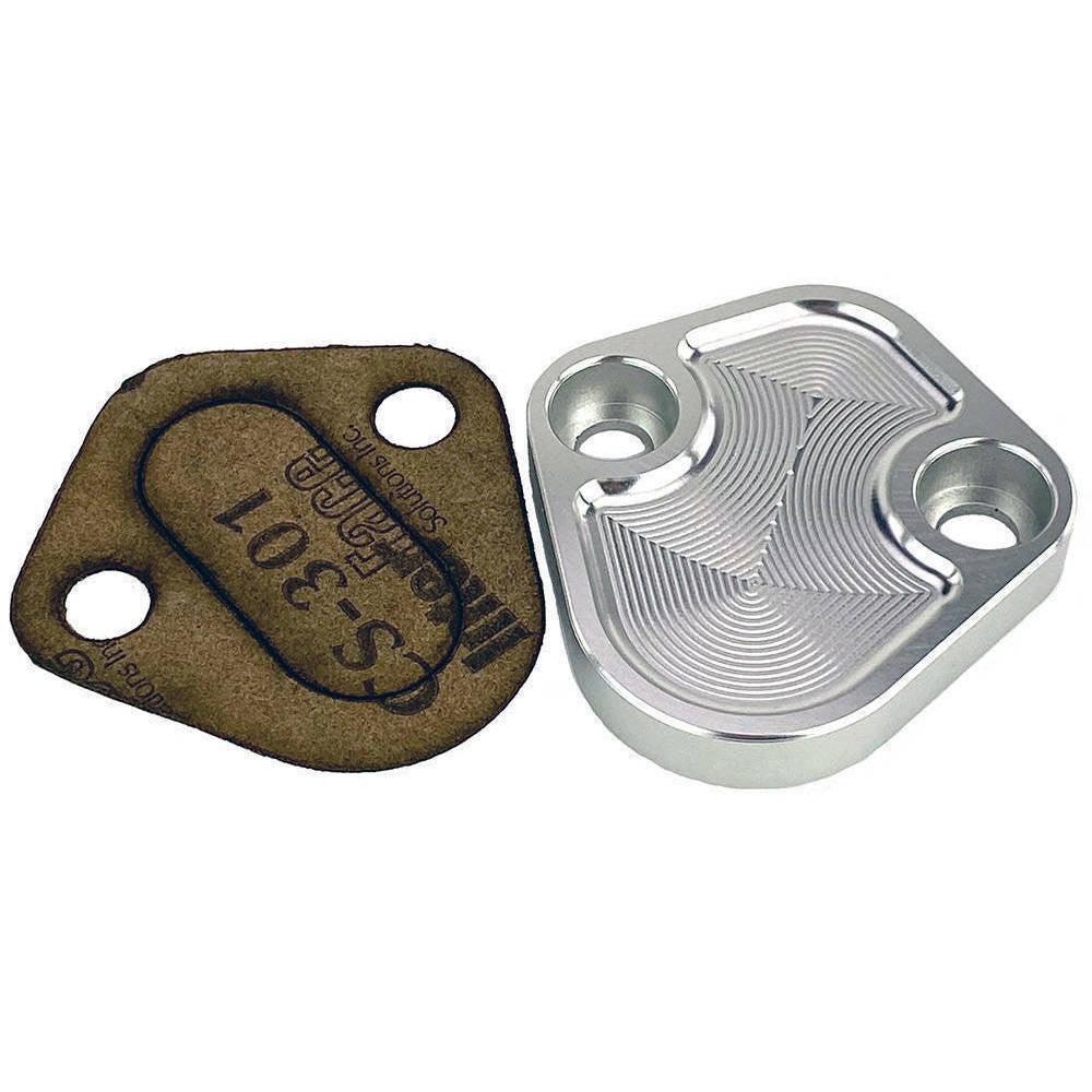 This beautifully cnc’d cover will seal the hole in the engine block if you are converting from a mechanical pump to an electric pump.