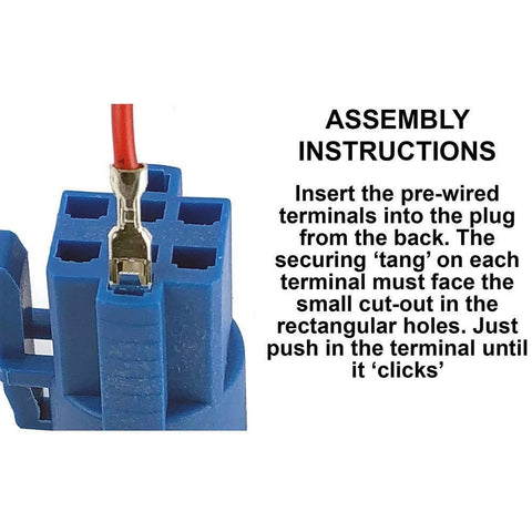 Supplied with six pre-assembled terminals and 200mm long wires and a plug block.