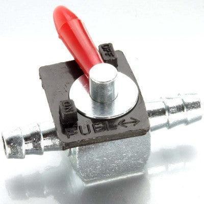 This miniature fuel tap, crafted from plated brass, offers a compact and efficient solution for fuel control. Measuring just 48mm end-to-end with 8mm barbed hose tails, it's ideal for space-constrained applications.