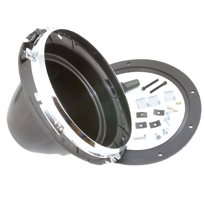 Upgrade your vehicle's lighting with this 7" headlamp bowl kit. It features a durable moulded plastic bowl and a stylish chrome metal lamp ring, complete with a grommet and rubber gasket for a secure fit. This kit includes all necessary mounting and adjuster screws and plates for easy installation.