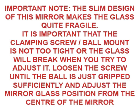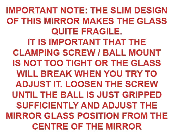 IMPORTANT NOTE: THE SLIM DESIGN OF THIS MIRROR MAKES THE GLASS QUITE FRAGILE.