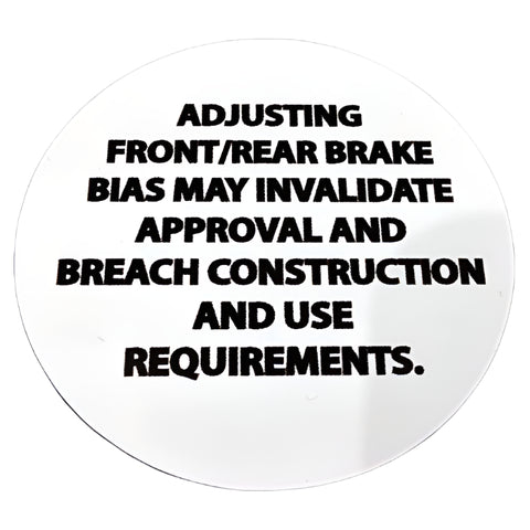 We have produced this sticker to meet the regulations, stick it on or near the pedal box or master cylinders to satisfy the IVA inspector.