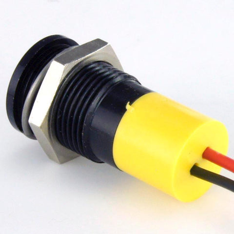 The quality of these warning lights is really outstanding, they are machined from alloy and finished with a very nice gloss black housing. The legend is engraved into the face of the light and illuminated by the LED hidden behind. With a bezel diameter of 16mm and a dashboard projection of just 1.5mm these are IVA OK! Mount through a 14mm hole and secure with the plated half nut and spring washer supplied, 29mm rear projection and 200mm flyleads.