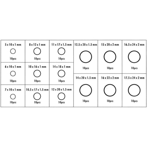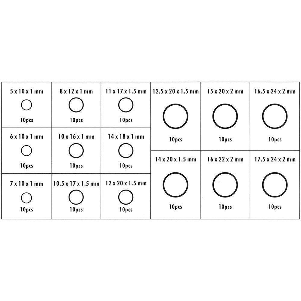 Ten each of fifteen sizes from 10mm diameter with a 5mm hole