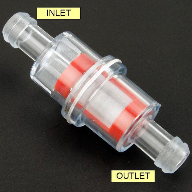 Here's a very small, very discreet fuel filter. 8mm Inlet and Outlet, 60mm long and only 21mm maximum diameter.