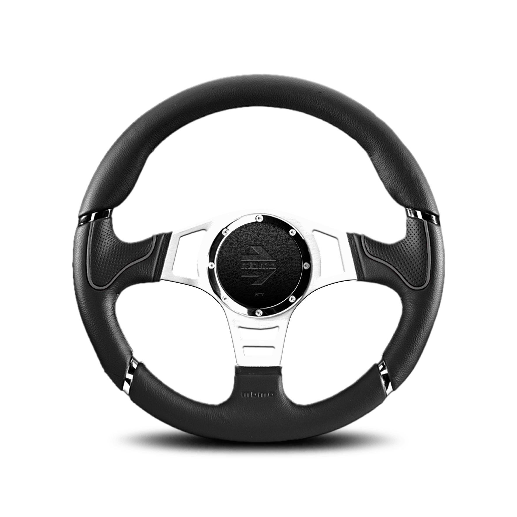 Enhance your driving experience with the Millenium Sport Steering Wheel. Crafted from premium leather and aluminium, this wheel offers a perfect blend of style and performance. Its sporty design features chrome accents, a leather centre pad, and brushed aluminium spokes.
