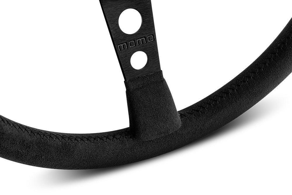 Enhance your driving experience with the MOD.07 Black Edition Steering Wheel. Crafted from premium Italian black microfibre, this wheel boasts black cut-out aluminium spokes and a laser-etched "Black Edition" logo. The 12 o'clock position features a premium black leather insert, and the wheel is hand cross-stitched for a luxurious feel. Complete with a unique matt and gloss black horn button, the MOD.07 Black Edition adds a touch of sophistication to any vehicle interior.