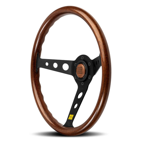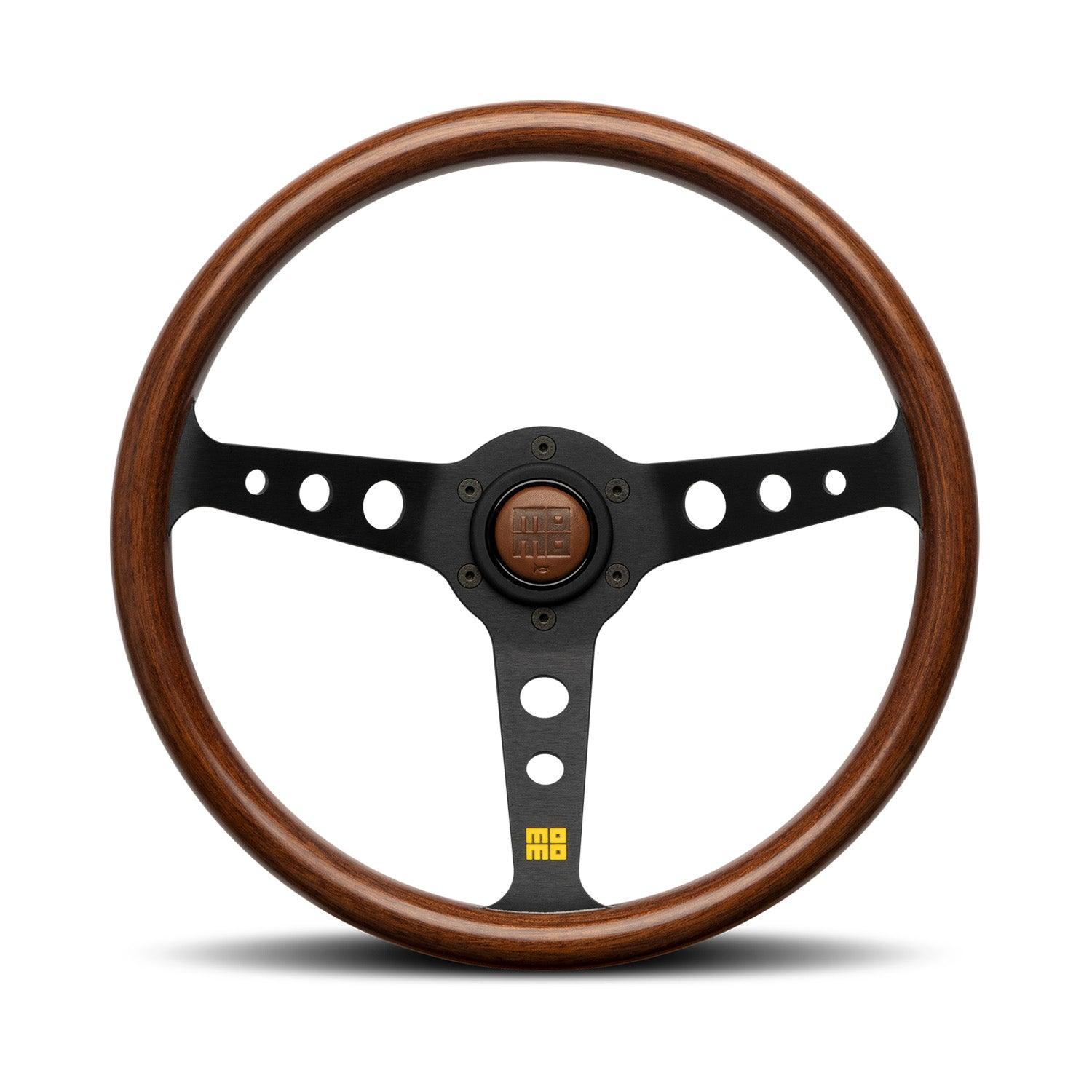 Enhance your vehicle's interior with the exquisite MOD.07 Heritage steering wheel. Crafted from premium Italian mahogany wood, this 350mm wheel boasts black aluminium spokes, finger grooves for enhanced grip, and a subtle Heritage logo. The tobacco brown leather horn button adds a touch of vintage elegance.