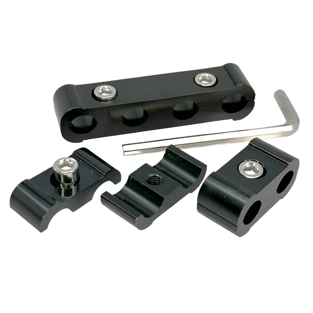 ONE 4 WAY AND TWO 2 WAY 8mm BLACK ANODISED ALUMINIUM CABLE OR HOSE SEPARATOR #CSEP