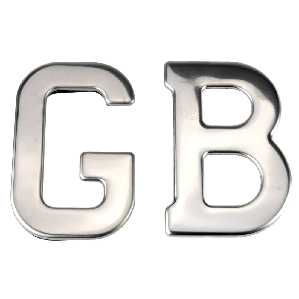 This pressed stainless steel GB badge is a mark of quality and distinction. Each letter measures 86mm x 55mm x 3.8mm, creating a substantial presence. The strong 3M peel-off foam adhesive is cleverly inset into the stainless steel pressing, ensuring a virtually invisible fixing method.