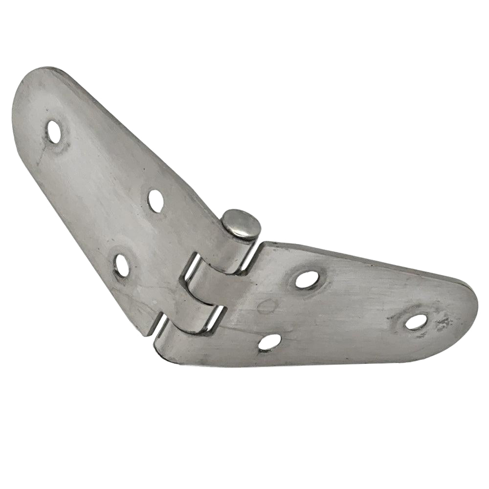 This polished stainless steel hinge offers robust functionality and a sleek aesthetic. Measuring 138mm x 44mm when open and 2mm thick, it's ideal for various applications. Featuring six 5mm diameter countersunk holes and a fixed stainless pin, this hinge ensures durability and smooth operation. M5 csk screws are recommended for fixing.