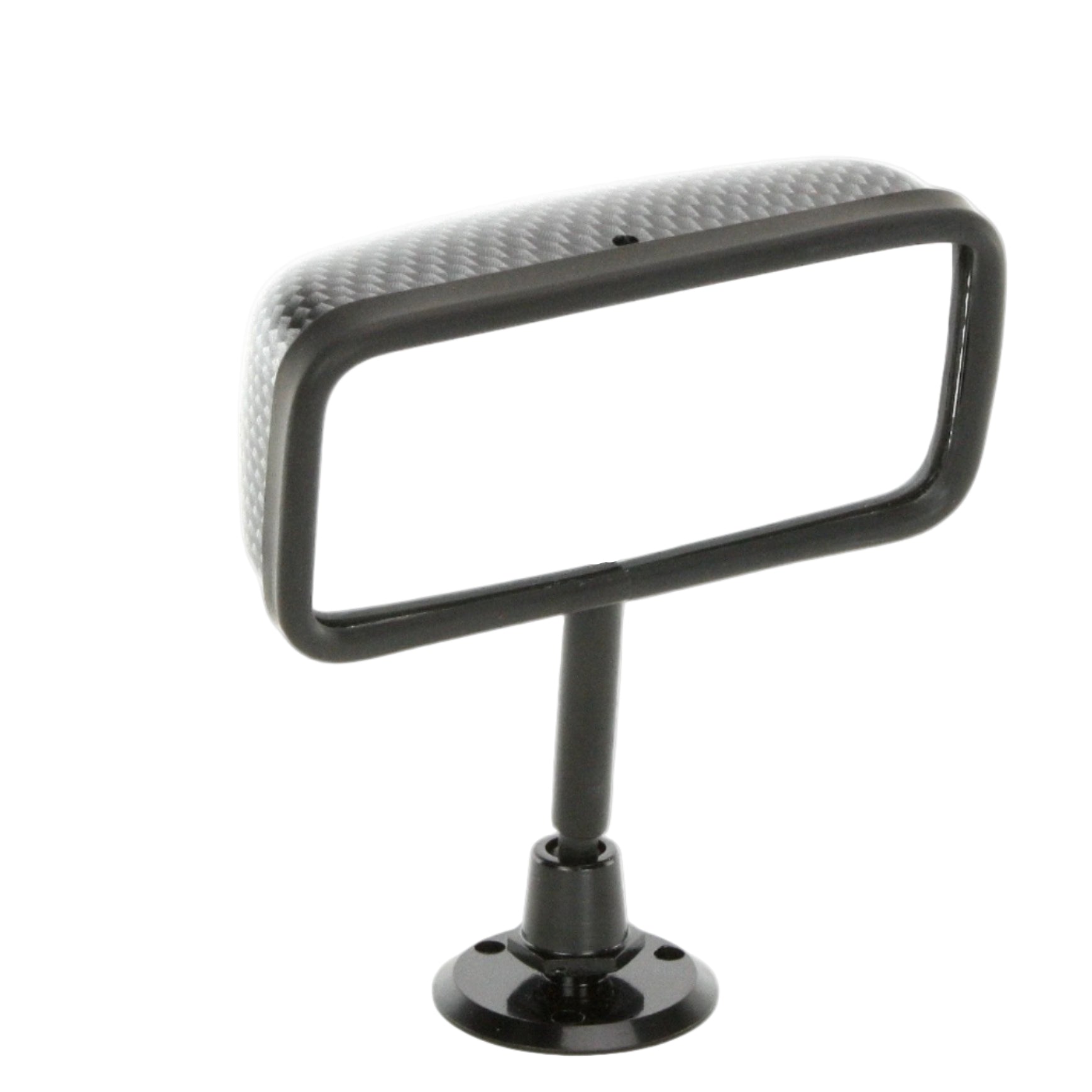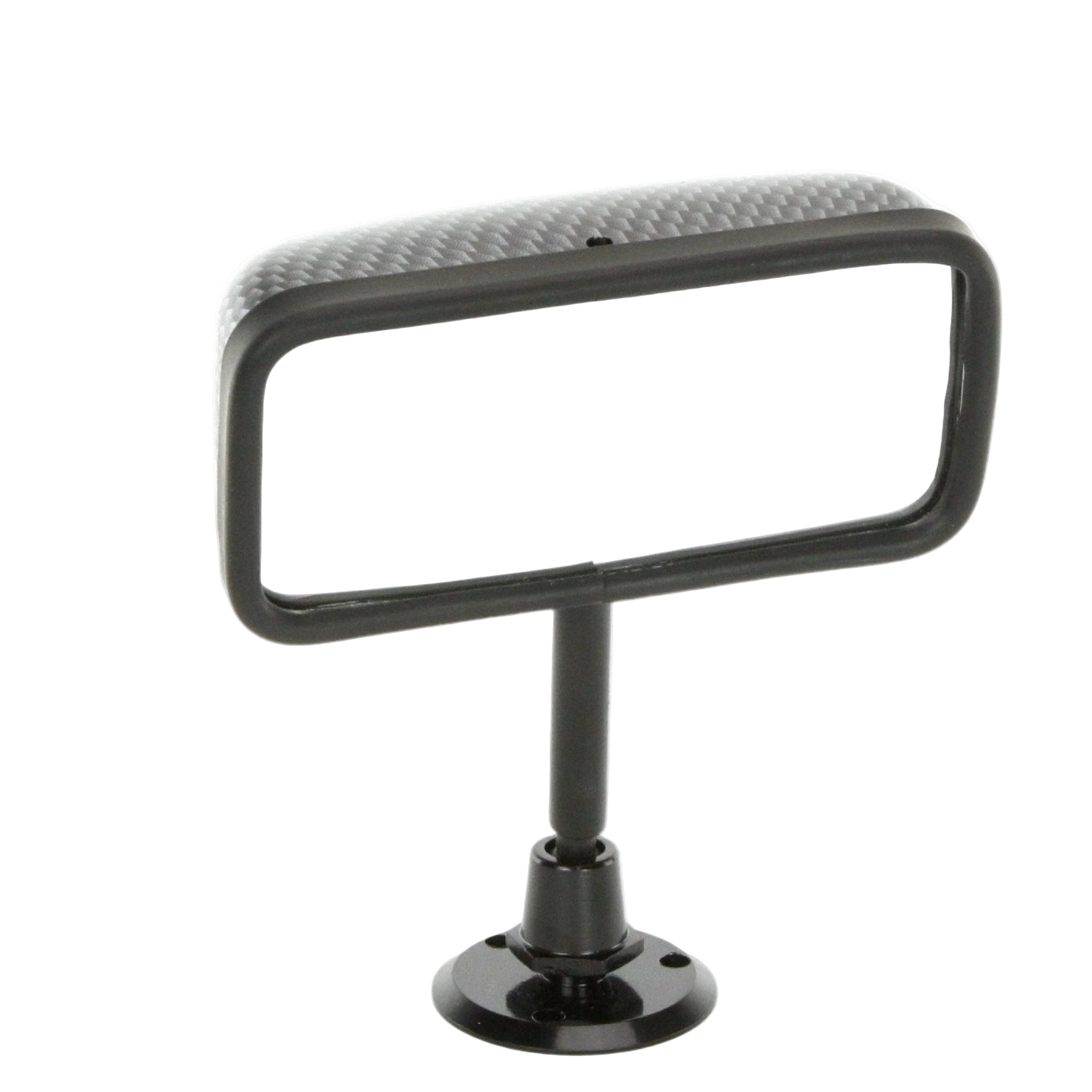 This race-style interior mirror boasts a sleek carbon effect finish and IVA-approved rubber trim. Measuring 116mm in diameter, it offers a wide viewing angle for enhanced visibility. The convex glass minimizes blind spots, while the sturdy aluminium stem and disc base provide secure mounting. Upgrade your vehicle's interior with this stylish and functional mirror.
