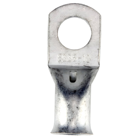 Securely connect your 35mm² battery cable with this high-quality 10mm ring terminal. Made from tinned copper for excellent conductivity and corrosion resistance. Suitable for both soldering and crimping.