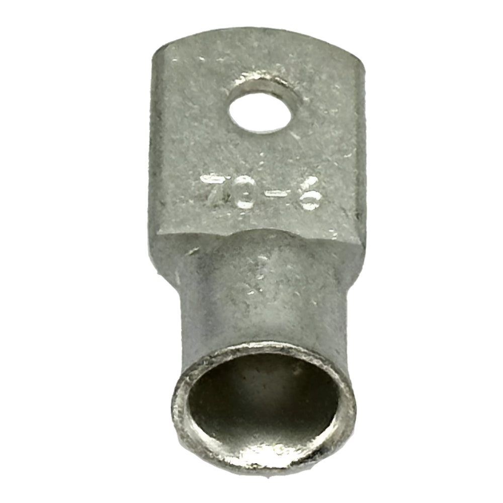 Heavy-duty ring terminal for 70mm² battery cables. Tinned copper, 6mm hole. Solder or crimp.
