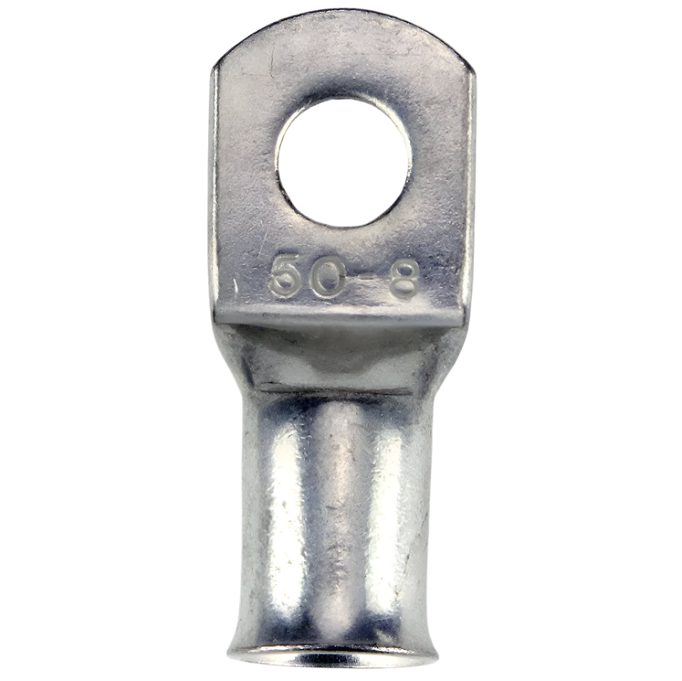This high-quality 8mm ring terminal is designed for use with 50mm² battery cables. Constructed from tinned copper for excellent conductivity and corrosion resistance, this terminal can be either soldered or crimped onto the cable. The 8mm hole ensures a secure and reliable connection.